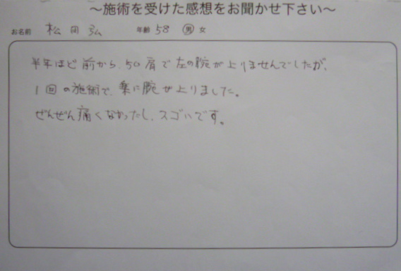1回の施術で楽に腕が楽になりました。